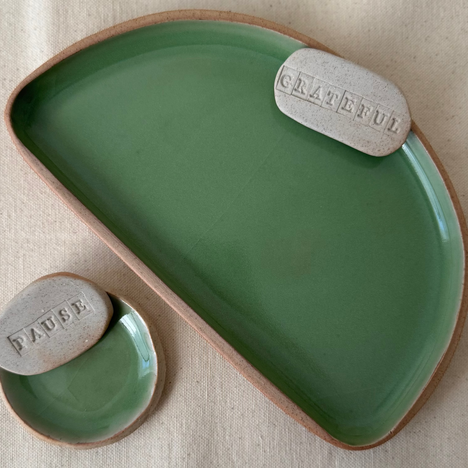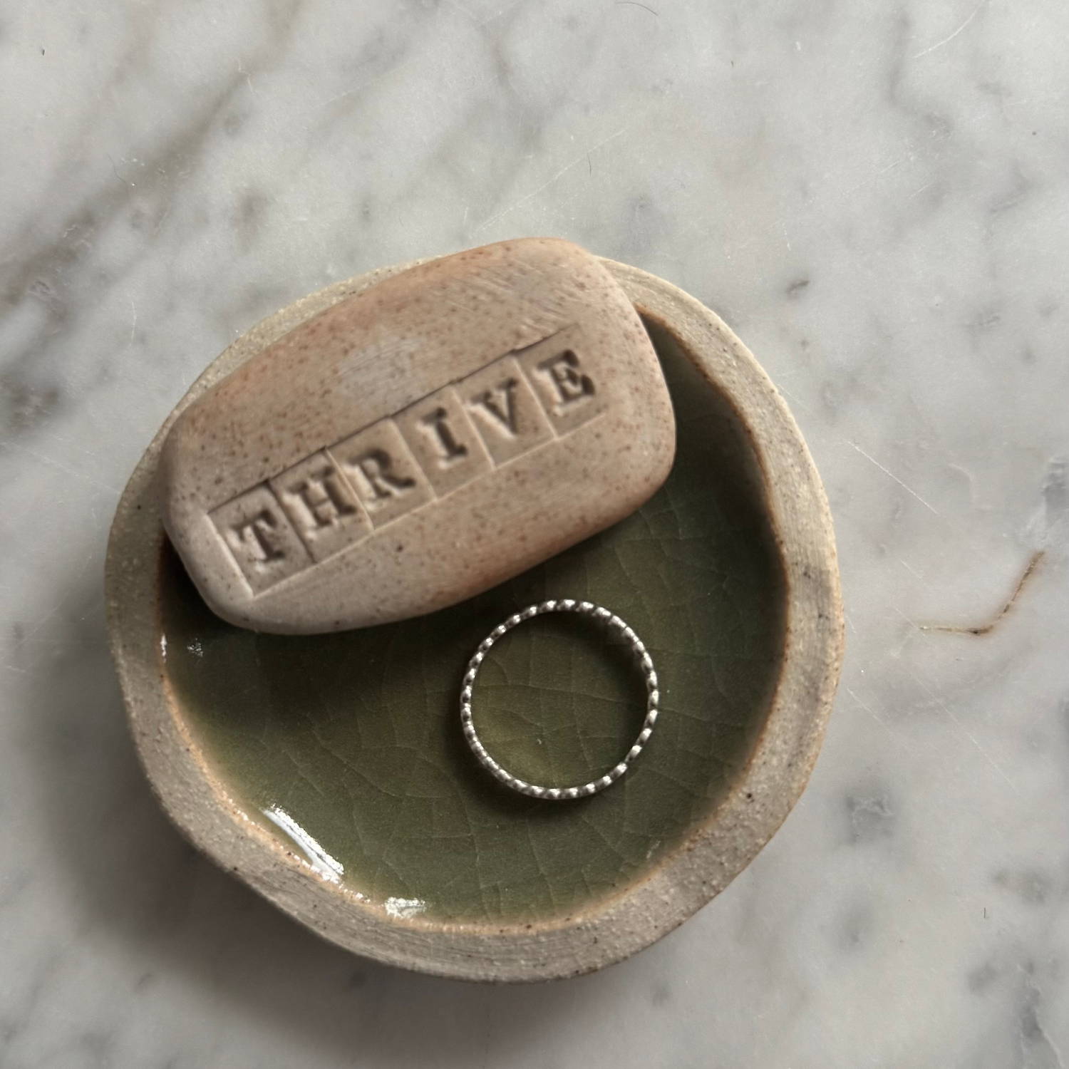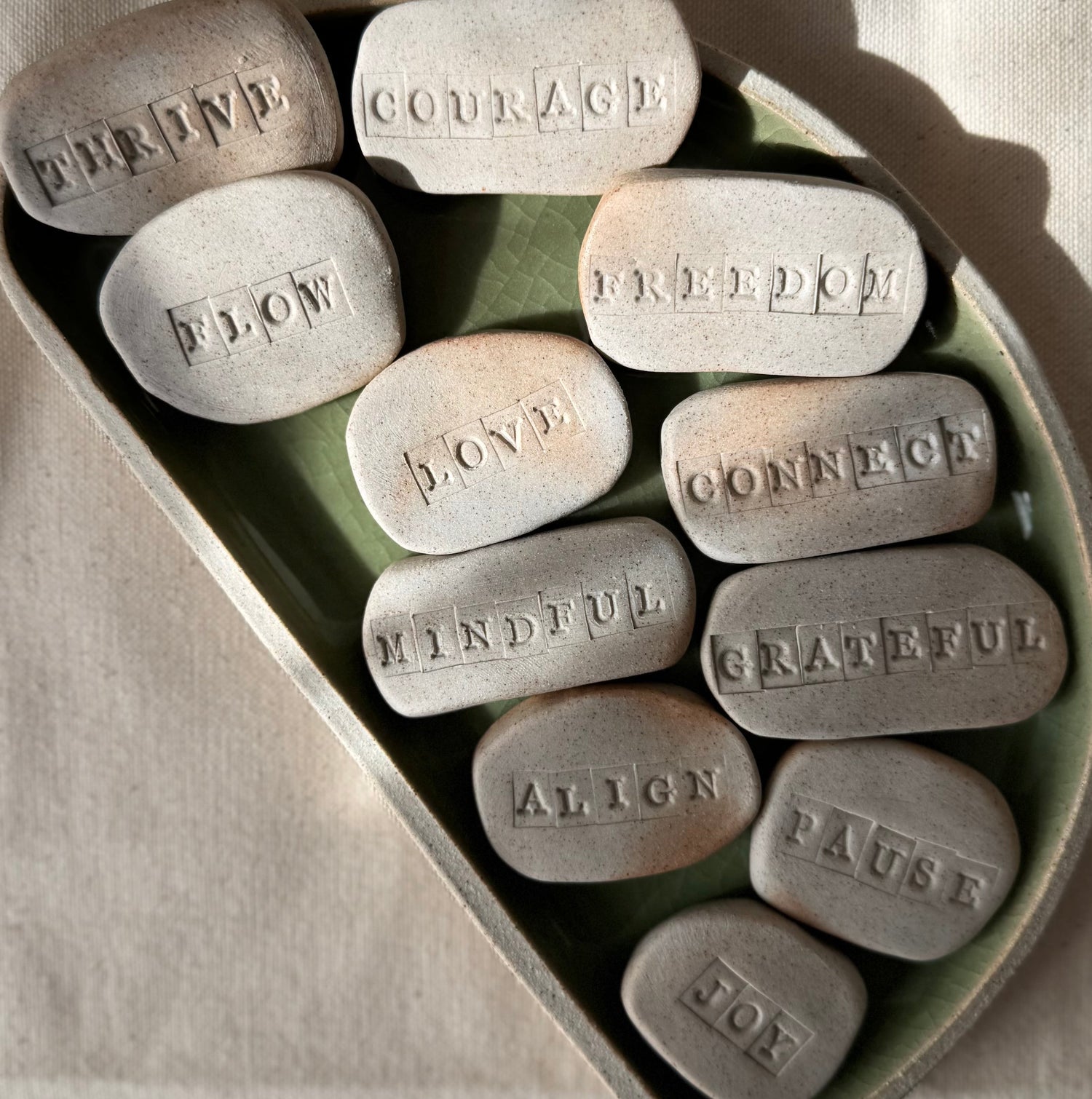 Perfect for your nightstand, office desk, meditation space, or entryway table, this ceramic tray transforms everyday moments into intentional rituals. Simply choose your word — such as pause, thrive, grateful, connection, focus, or enough — and let it guide your day.