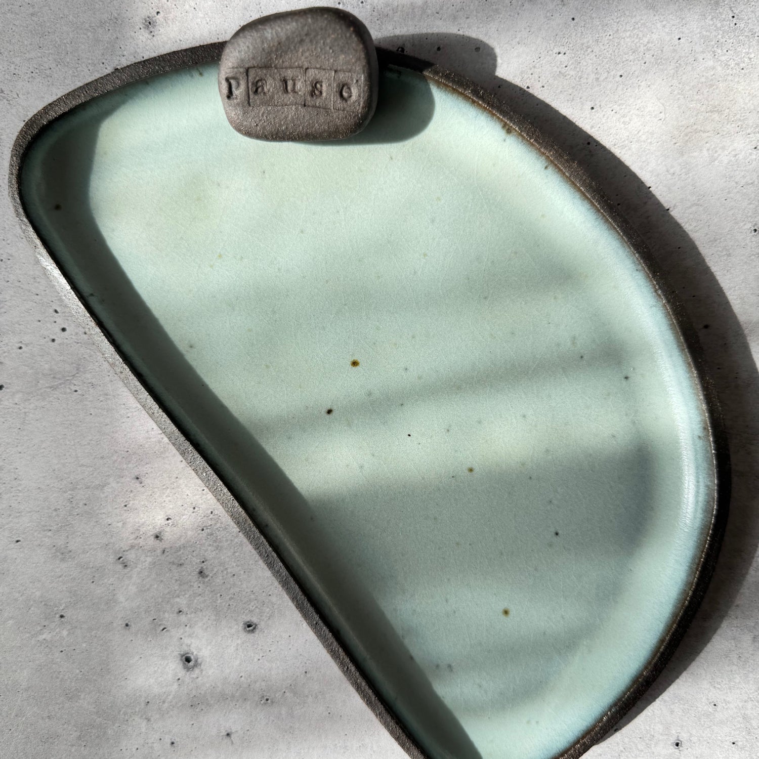 The Pause Tray + Intention Stone Set is a handmade ceramic intention tray designed to support daily intention setting, mindful rituals, and slow living practices.